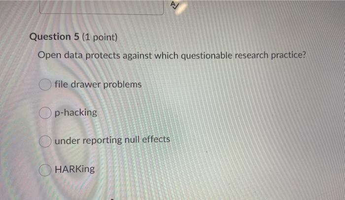 Solved A Question 5 1 Point Open Data Protects Against Chegg Com